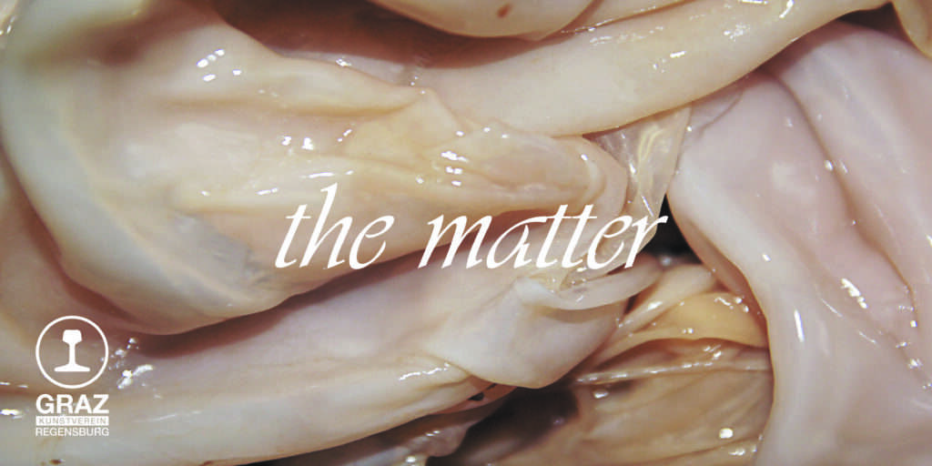 Unter dem Titel „the matter“ zeigt der KunstvereinGRAZ drei künstlerische Positionen aus den Bereichen Malerei, Keramik, Fotografie und Installation, die sich mit Materialität realer und fiktiver Körper beschäftigen und sie in verschiedenen Medien umsetzen. Dabei rückt die enge synästhetische Verbindung zwischen Haptik und Visualität in den Fokus. Sowohl die figürliche Malerei von Severine Henriette Meier, die den Zoom auf ausschnitthafte Körperfragmente lenkt, als auch die glasierten Keramiken von Ollie Gandul, die Assoziationen an Aliens und Sex Toys gleichermaßen wecken, zeigen den schmalen Grat zwischen Lust und Ekel, Anziehung und Abstoßung, Genuss und Schmerz. Komplementiert werden diese Arbeiten von den fotografischen und installativen Objekten von Melanie Schindler, in denen die Veränderlichkeit organischen Materials aufgrund chemischer Prozesse vorgeführt wird.
